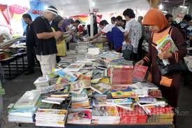 Benar sekali, pas udah sampai di halaman perpustarda. Terlihat beberapa stan yang memajang ratusan bahkan ribuan buku. Jadi pusing milihnya, apalagi buku- bukunya menarik semua. Diantara buku- buku yang menarik perhatianku, ada buku tentang bagaimana menjadi penulis, bagaimana menjadi pengusaha atau memulai bisnis, buku- buku tentang bahasa asing, namun sayang aku tidak menemukan buku belajar bahasa jepang, selain itu juga banyak buku tentang pengetahuan agama, umum dan novel. Wah, bingung. Pengen beli semuanya, andai saja uang tidak sedang menipis, hee.